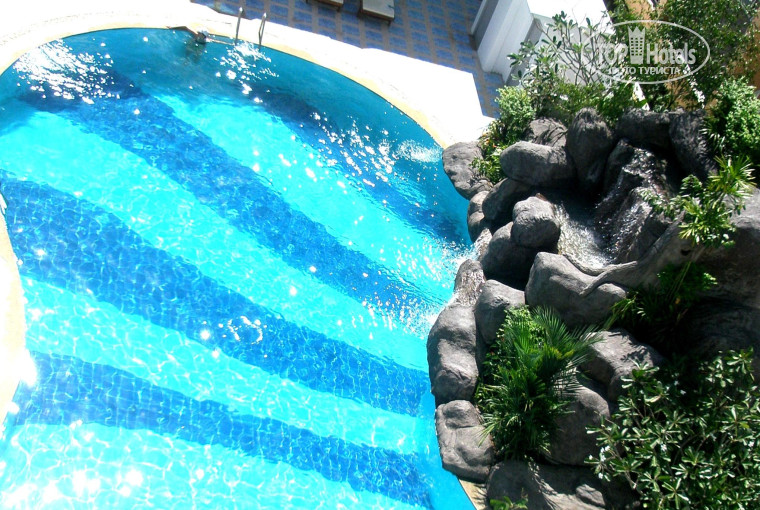 Небольшая территория, посредине очень красивый бассейн с водопадом.