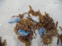 Пляж большой, в меру чистый. Если не будет голубых медуз, то можно купаться без проблем.