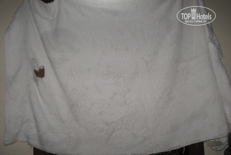 Полотенца давали дырявые и плохо постиранные. Когда мы его показали персоналу они ехидно улыбались. И несколько раз давали такие полотенца. Их фото на этом сайте. Бельё вообше не меняли.