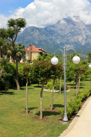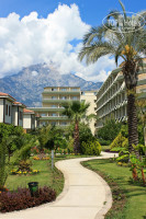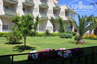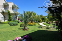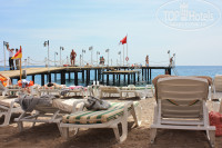 Довольно красивая, зеленая, ухоженная, цветущая территория с апельсиновыми, гранатовыми деревьями и соснами. Чистый галечный пляж с голубым флагом, удобный пирс, прозрачная вода. Крупные камни персонал с пляжа удаляет. Большой бассейн. Лежаки у моря практически всегда можно было найти без проблем.