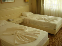 НОМЕРА: хорошие, в светло-бежевых тонах. Нормальные кровати, классные подушки и махровые простыни для укрывания. Просторный балкон с 2-мя стульями и круглым столиком. Хорошо, что мебель на балконе пластиковая. Мы на ней сушили выстиранные вещи. У кого было желание, можно было взять напрокат раскладную сушилку (видели на балконах).