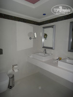 В номере также есть банные халаты, тапочки, полотенца всех возможных размеров и предназначения, в ванной – мыло, шампунь, гель для душа и молочко для тела с морскими минералами, шапочка для душа, набор иголок с нитками, набор с пилочкой для ногтей, ватными дисками и палочками, губка для обуви.