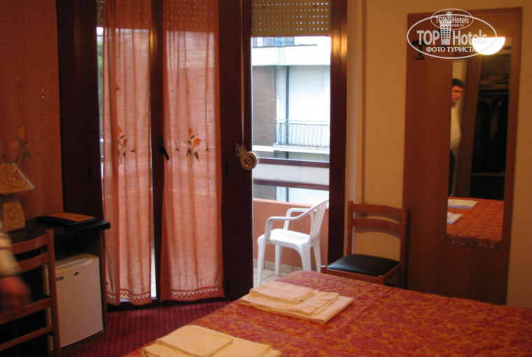 Римини имеет наверное самое удачное расположение аэропорта - менее 15 минут и ты уже в отеле!!! Сразу хочу отметить, что мне несказанно повезло - совершенно случайно достался самый лучший номер в отеле - над главным входом!!! Достаточно большая комната (хотя меня все пугали Итальянскими отелями), панорамное угловое стекление и..... ОГРОМНЫЙ УГЛОВОЙ БАЛКОН!!!! Да, перед отъездом начиталась "ужасных историй про "Дырки в полу в ванных в Римини и душ во все стороны" (сразу вспомнила, как в отзывах в Турции все жалуются на тесные душевые кабины), так вот конкретно в этом номее - НОРМАЛЬНЫЙ отгороженный задвижной занавеской угол с поддоном и Нормальным душем, который снимается со стены!!!). Хотя сама ванная комната узковата (это прочувствовал мой крупненький супруг).