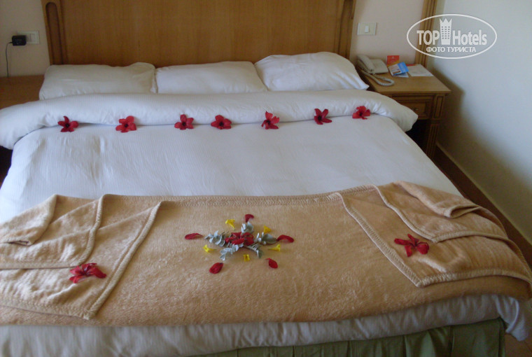 Мы ездили с 17 по 27 января. Приехали рано утром, около восьми утра, но проблем с заселением не было, ждать совсем не пришлось. Нас поселили в чудесный отдельный домик, с видом на море, никакого шума с бассейна слышно не было. Питание вкусное, хоть немного и пресноватое, мой муж любит поострее. Сейф, утюг, русскоязычные каналы(первый и второй). Персонал очень приветливый, мы завели много друзей. Море теплое, +25, только нужно зайти немного подальше, да да, с берега вода холоднее чем на глубине - гейзеры. Все очень понравилось. Советуем!