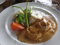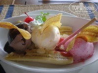 На территории шесть ресторанов. Готовили очень вкусно, особенно в рыбном ресторане. В меню есть и мясные и рыбные блюда, свежие фрукты, мороженое. А кроме того живая музыка, легкий морской ветерок, и романтическая обстановка. Все было вкусно и сытно, хотя свои 900 бат не съедали.