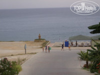 Отель состоит из одного шестиэтажного корпуса, небольшой (всего 75 номеров), почти все балконы выходят на бассейн и видом на море (ночью даже слышно шум прибоя). Номера достаточно большие, балконы тоже; в номере все как обещано: душ, фен, индивидуальный кондиционер, телевизор с музыкальным и русским каналом ( правда русский канал – это “Культура”, по которому кроме старых фильмов ничего не показывают, но нам и этого не надо было)). Номера есть с кафельным и ковровым покрытием (как повезет). Территория у отеля маленькая, вернее вообще нет, только небольшой бассейн, где всегда плавает куча народу, есть также закрытый бассейн ( там прохладная вода!!!, что большая редкость в 40 градусов).