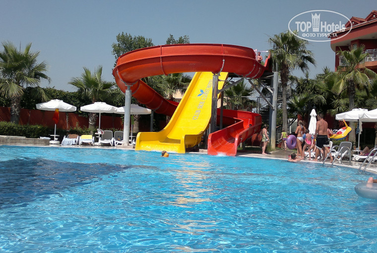 На территории отеля 2 открытых бассеина с горками, горки работают два раза в день. Шезлонгов у бассеина всегда не хватает (у старого корпуса). Также на территории есть две детские площадки, которая у нового корпуса очень не удобна в плане присмотра за детьми, а старая площадка находится рядом с баром где находятся столики, очень удобно посидеть за столиком и одновременно смотреть за детьми.