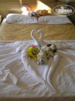 Начну с самого начала. Приехали мы в отель гдето в 14 часов, мы отдали документы для оформления и нас проводили в снек-бар пообедать. По приходу из снек-бара нас сразу разместили. Нас поселили во втором корпусе на "0" этаже а друзей на "1" этаже в старом корпусе (мы правда просили чтобы нас поселили в новый корпус). Номер у нас был с двух-ярустной кроватью, балкон выходил на бассеин, перед окнами пальмы (красота). Номер не большой, но нам хватало. В ванной комнате неуобно прикручен душ к потолку, неудобно мыть ребенка (2годика). Мы взяли пластмасовый стакан поливали дочу из него. Горнирчный (мужчина) был немного ленив, убирался через день, воду вообще не ставил, пока мы сами к нему не подойдем и не попросим . А у друзей была другая горничная, она ежедневно убиралась и воду ставила регулярно. Вопчем сервис зависит от конкретного горничного.