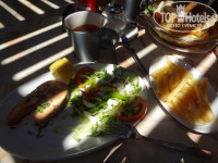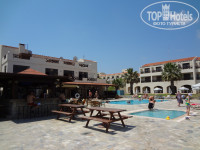 Питание понравилось. Мы брали тур с питанием полный пансион (FB). Завтрак стандартный, описан в предыдущих отзывах. В прошлом году отдыхали в другом 3*отеле Кипра, завтрак был аналогичный. Обедали в баре при отеле, из меню можно было выбрать любое блюдо и не одно. Порции очень большие. Заказываешь одно блюдо, приносят три тарелки: на одной отбивная (к примеру), на другой - картофель фри, на третьей - салат греческий (по-местному домашний). Можно было заказать свиную отбивную, куриный шашлык, семгу на гриле, спагетти Болоньез, мусака, гамбургеры, омлеты и т.д. Средняя стоимость блюда 7 евро (для тех кто едет на завтрак-ужин). Детское меню странное: сосиски, жареные нагетсы, картофель фри... мы таким ребенка не кормим. Ужин - шведский стол, большой выбор блюд, разные сорта мяса, рыба, сырная тарелка с дорогими сырами, блюдо от шеф-повара (запеченое мясо с различными соусами). Из фруктов был арбуз или дыня. Бисквиты, желе, мороженное для всех. Напитки за обедом и ужином платные.