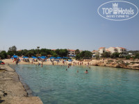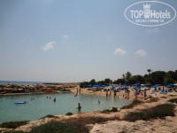Лежаки и зонтики на территории отеля у бассейна, в саду, под деревьями у пляжа бесплатные. Там, где трава заканчивается и начинается песок - это уже муниципальный пляж, где лежаки платные. Очень удобно, загораешь на отельном лежаке, идешь купаться в море, близко и бесплатно. Пляж и заход в море - это единственное, что нам не понравилось в отеле Мимоза. Небольшая бухточка, узкий пляж, заход в море, окруженный с двух сторон камнями. В этом небольшом лягушатнике купаются и дети и взрослые, вода мутная. Когда мы приехали температура воды была около 22 градусов, затем постепенно прогрелась до 26. Чтобы оценить всю красоту средиземного моря и пляжей Кипра советую съездить на другие пляжи. Те, кто не имеет возможности взять машину напрокат, могут добраться на автобусе 101 Паралимни, сказать водителю Fig Tree Bay (пляж фиговых деревьев), либо Flamingo Beach. В обратную сторону ходит автобус 102 Айя-Напа, на нем можно доехать до пляжа Коннос бей (всего несколько остановок) или до пляжа Айя-Напы.