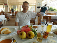Хамам в отеле 35$, мужу понравилось, я не ходила. Ездили на экскурсию от Пегаса - обзорная по Алании 30$ с человека, не очень понравилось, что половина дня возили в торговые центры ювелирный и кожаный. Потом в оставшееся время возили на аланийскую крепость, на красную башню поднимались, спускались в пещеру и купались на пляже клеопатры (наш пляж намного лучше, так как, там море было грязное зеленое какое-то, а у нас очень очень чистое и прозрачное) Далее прогулка на яхте с небольшим представлением и купанием в открытом море. В эту экскурсию входил обед в каком-то кафе, очень по-скромному (в сравнении с отелем), но все наелись, на яхте все напитки и мороженное за свой счет. Около отеля экскурсии дешевле на 10-15$. Своим ходом мы ездили еще в пос.Авсаллар, 10мин. езды на автобусе от отеля. Там погуляли, прикупили на рынке фруктов и лукума. Едили сами в Аланию на базар. купили подарки. В общем отдых удался, 8 дней конечно мало, но дома ждали детки. Незнаю, поехала бы еще в Аску Бусе, но в отель этой же сети, с пляжем поближе поеду точно. Советую этот отель семеным людям, для молодежи будет скучновато.