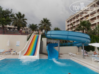 Отдыхали в отеле с 15 июня 2012г. по 23 июня 20212г. вдвоем с мужем. Летали с Пегасом. Проблем по прибытию и отправлению не было, все точно по расписанию. Приехали в отель рано в 6 часов утра. На рецепшене оформили сказали сходить на завтрак и потом гулять до 14 часов. Вежливо попросили поселить пораньше и после того как дали 20$ сразу поселили в номер с балконом на третьем этаже с видом на море и на дорогу(не близко). Единственное, что с открытой дверью было немного слышно шум от проезжающих машин, но менять номер мы не стали, так как с видом на бассейн будет шумно от анимации и днем и вечером. Номер приличный, все работало, вода постоянно и холодная и горячая, 2 русских канала. Убирали каждый день: выносили мусор, меняли полотенца в номере, если бросить на пол, заправляли постель и приносили воду 1.5л., полы мыли через раз, но я брала с собой домашние шлепки и они мне пригодились, так как пол был выложен плиткой. Кормили прилично, каждый день что-нибудь мясное и курица и говядина, рыба то же была каждый день, но мне она не понравилась, похожа на нашу кильку. Вкусные были суп-пюре - фасолевый, чечевичный. Фрукты: арбузы, дыни, яблоки, сливы, апельсины, грейфрукты, абрикосы. Сладостей очень много разных. Каждый день на ужин что-нибудь на гриле, попробовали один раз говяжьи почки жареные. Лепешки очень вкусные за баром у бассейна в беседке. Каждый день мороженное и сладости у бассейна в 17 часов. Есть еще ресторан Аля-Карт с видом на море, просто кафе с видом на море, один раз бесплатно можно посетить, мы не ходили. У отеля 2 пляжа: с пирсом и песчанный до которого пешком 5 минут вдоль трассы. Спуск к пляжам высокие лесницы, для деток не очень. Мы ходили на оба пляжа нам нравилось, на пляже у пирса на берегу живут осьминог и морской котик - его мы даже один раз видели. Бассейн большой взрослый глубокий, есть совсем маленький для деток и один бассейн с двумя горками. Анимация супер!!! Очень понравилось, каждый вечер новая программа, фокусы, конкурсы с отдыхающими - мисс Аска Бусе, лучшая пара Аска Бусе. Когда уезжали, не застали жалко - в этот вечер супер представление с огнем у бассейна было. На дикотеки возили от отеля за 10$ в Аланью. Один раз дискотека на территории отеля, по-моему по понедельникам.