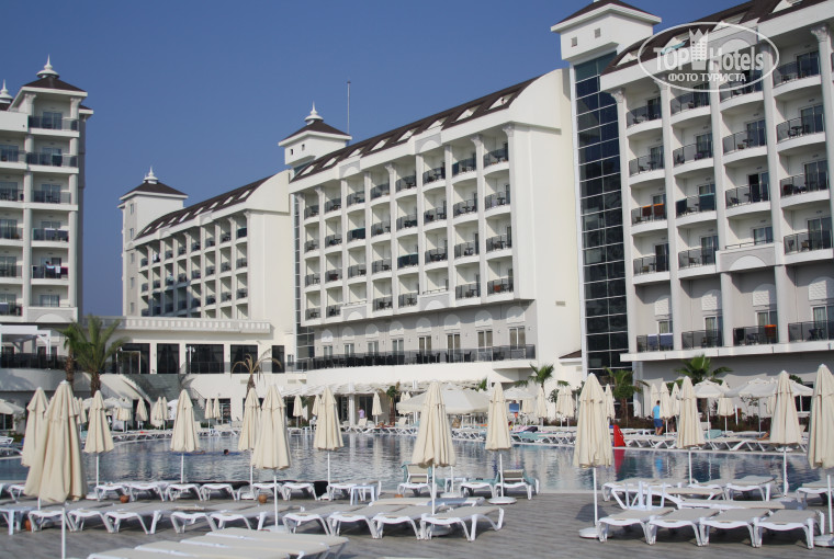Приехали 18 июля(выехали 30).Ехали около 1.5 часа от аэропорта до отеля.Очень красивый хол.Мы заполнили бланки и стали ждать наш номер.Были маленькие проблемки ,но это быстро забылось.Еда на вкус и цвет каждому,это точно.Огромное изобилие.Анимация слабенькая,самый веселый из команды это Макс.Море теплое,волны классные.На пляже есть улыбчивый бармен)Поднимал настроение.ОООчень вкусное мороженое!Советую.На данный момент есть мелкий ремонт,на пляже поставили навесы.Можете ездить в город Сиде или Манавгат на местном автобусике,ехать минут 10.Кто видел,привет.Очень скучаю по отельчику)
