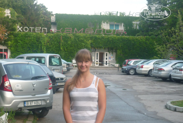 Посетили Албену в июне 2012 года, жили в Камелии. Отель считается 2*. Своего рецепшена нет, остался только просторный холл, где тренировались балерины и танцоры, детские колективы, приехавшие выступать в Албену. Регистрация в соседнем отеле Доростор, там же и питание. В Камелии только номера (стаи), ни рецепшена, ни столовой, и тем более бассейна в Камелии нет. Отель со стороны входа выглядит заросшим зеленью (видно на фото). Заселялись в 2 часа ночи и было как-то неуютно, ведут в какие-то заросли. Но стоял обалденный аромат, что-то очень приятно цвело, возможно и липы. Все нормализовалось и понравилось позже.