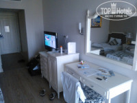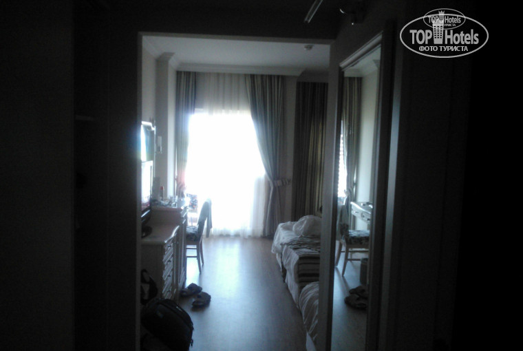 В номере чисто, есть большой ЖК-телевизор с 3-4 русскими каналами,но бестолковыми,так что олимпиаду мы смотрели на турецком или немецком. Кондей конечно зараза. Каждые 2-3 часа сам отрубался и приходилось вручную включать ,днём то ладно,а вот ночью без кондея очень жарко, поэтому вставал несколько раз по ночам, дабы врубить кондей.