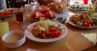 Питание - мы наедались. Мяса маловато, из фруктов были только арбуз и дыня, причем в первые дни не сладкие (мы не расстроились - купили в магазине абалденный вкусный арбузище), овощей много, грибы, рыба, вкусные кексы на полдник. Конечно меню не было настолько разнообразное как например в 4-ке, но голодными мы никогда не ходили. Я даже скучаю по фирменным Йылдызским баклажанчикам. Супы мне не понравились.