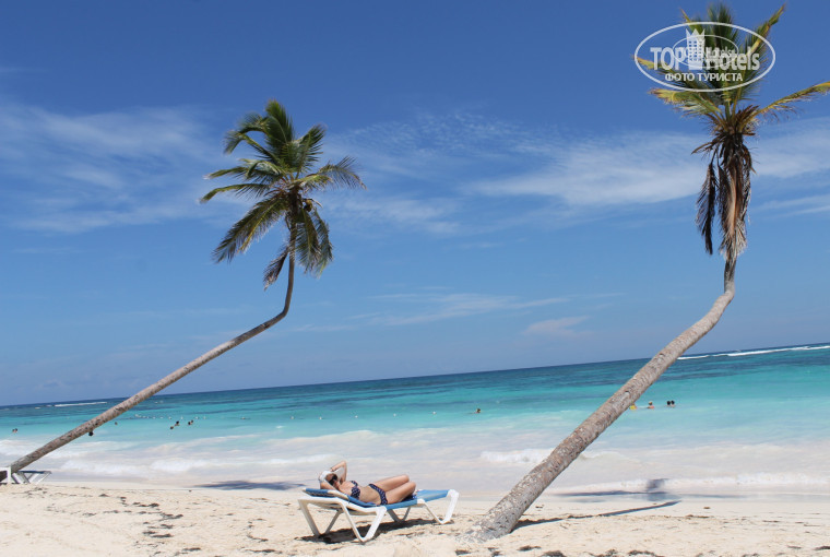 Ребята, это рай. Это действительно "Баунти". Бирюзовое море, белый песок, который не нагревается, кривые пальмы. Все из других отелей постоянно приходили к нам фоткаться на этих пальмах. Мы как то пошли после обеда прогуляться, шли по пляжу 2,5 часа и не увидили такого красивого пляжа. Пальм таких, которые настолько близко к воде мы не нашли.Дошли мы кстате до дикого пляжа Макао.Там атлантический океан, огромные волны, даже как то страшно было купаться))))Лежаков на пляже всегда хватало, мы обычно брали полотенце перед завтраком, шли на пляж, кидали на лежаки рядом с морем или под зонтиком, а потом на завтрак.