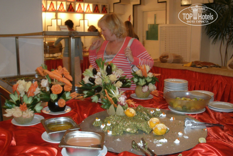 Отель стоит на берегу моря и из номера слышен шум прибоя.Много цветущей зелени.К морю ведёт аллея из цветущих кустов и деревьев.Хороший внутренний двор с тремя бассейнами разной глубины.Кухня радует своим разнообразием и красивыми украшениями из овощей и фруктов.Номера с балконами,вечером залюбуешься красивой подсветкой двора и аллеи к морю.