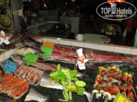 Отьезд отмечали в Японо-тайском ресторане в Патонге.(левее корабля с фонтанами)По транспортерной ленте мчится море деликатесов(только лучше сесть подальше от входа поближе к раздаче иначе многие тарелочки до вас не доедут.)