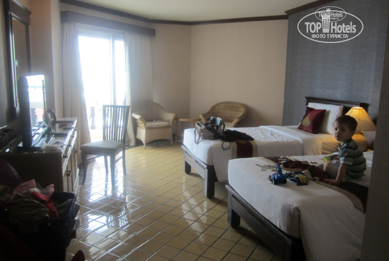 Страну улыбок посетила второй раз, по-этому есть с чем сравнить, от этого отеля осталась не в восторге, номер дали на 10 этаже, с видом на бассейн, за это конечно была благодарна, номер средненький, мебель старая, одна стена грязнющая, как сопли какие-то намазаны, но это если уж совсем придираться. Пляжные полотенца не помешало бы заменить на новые. Больше всего была возмущенна что за 9 дней нам ни разу не поменяли постельное белье!!! Ребенок приложил руки, измазанные манго, а на следующий день нам просто перевернули одеяло и застелили так чтобы было не видно! Так и спали... За четыре дня до выезда с отеля заказывали обед в номер, ребенок уронил маленький кусочек хлеба на пол, на следующий день мы уехали на о.Самет, приехали в тани за день до вылета домой, а наш сухарик так и лежит на полу. При выезде пытались с депозита (он кстати 100$) минусовать 1500 бат за маленькие почеркушки ручкой на постельном, не стирали, но заранее сказали что шариковая ручка не отстирается, подружка кое как договорилась на 300 бат, и то обидно.