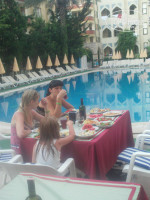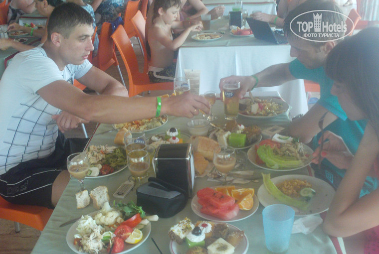 нормальный отель,не дорогой ,близко к морю,питание хорошее мясо дают каждый день,фрукты арбузы ,дыни,сливы,и яблоки.территории нет практически ,но пальмы красивые растут!минусы-плохой вход в море и анимация не очень.плюсы-чисто,кормят нормально.Но в этом году едем в пятерку посмотрим чем реально отличается от четверки !до базара около километра пешочком пройти,интернет бесплатный в лобби -нормальный по скайпу разговаривали,мороженное супер вкусное-1 или 2 бакса уже не помню.в номере убирались без чаевых,вроде нормально.кондер работал хорошо но сам выключался как будто его ставили на таймер.бассейнов 3 штуки и один детский,чистые+горка одна масюсенькая.бармены не очень потому что не давали в одни руки пару бокалов пива,но не грубили.в общем нормальная 4-ка,сравнивать пока не с чем.....