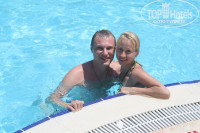 Очень приятные впечатления от отдыха!Отдыхали парой. Перед поездкой начитались плохих отзывов и немного расстроились. Отдых заочно уже был испорчен. Но по приезду в отель сразу изменилось мнение! Чистые номера, приветливый персонал! Можно сказать какой привет-такой ответ. Питание в отеле устраивало. Голодные не ходили. Алкоголь в баре нормальный. Бесплатно напитки только местного производство (вино, пиво, водка). По приезду нас встретила Ольга. Как и всем предложила хамам. Отказываться не стали. И не пожалели. Да и как же не посетить хамам, если вы приехали отдыхать в Турцию. Советуем всё-таки не отказываться. Заселили нас в 515 комнату. Номер небольшой, но уютный. Есть телевизор, сейф, холодильник, фен, кондиционер.Убирались в номере каждый день. За уборку оставляли чаевые (1-2$). С собой лучше брать доллары, чем евро. В магазинах продавцы путаются в курсе валют и вы немного теряете. В первый же день ходили на море. 5 минут ходьбы. Море чистое, но иногда неспокойное. Это даже интереснее.:-)На пляже также есть бесплатные напитки. Шезлонгов и зонтиков всегда хватало. Путёвки на экскурсии у отельного гида брать не стали, они дороже в 2 раза, чем у местных тур агентов. Путёвки покупали в ЯКОБС туре. Брали морскую прогулку(лодка Jet star, капитан Али). Очень понравилось. Капитат супер. Но напитки были платные и сравнительно дорого. Берите с собой воду. Ездили в акваленд. Катались на горках целый день:-) Кормили. Бесплатно один напиток, одно мороженое, один гамбургер(пицца или шаурма). Остались довольны.