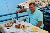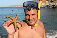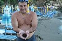 Мебель в номере хоть и не новая, но все чисто, убирали регулярно, проблем с водой, светом и душем не было, сплит работал. Телевизор за отдельную плату, но мы не брали. Балкон с видом на море. Красота!!! У нас был номер с кухней, так что при желании можно было готовить самим. У нас такого желания так и не возникло, потому что кормили вкусно и разнообразно. Спасибо повару. Приветливая женщина, к сожалению не помню как зовут. На завтрак всегда были сыр-колбаса, фрукты, чай-кофе, выпечка, йогурт, мюсли, джемы. На ужин обязательно суп, всегда очень вкусный, рыба, мясо, гарнир на выбор, овощи, салаты, фрукты или мороженное. Соки и спиртные напитки за отдельную плату. Голодными остаться просто не возможно. Обедали мы (если никуда не уезжали) в ресторане отеля. Вообще ресторанчики там при каждом отеле, можно кушать в любом. Но нам в своем больше всего нравилось. Порции большие, все вкусно. Мы брали одну порцию на двоих. Цен точно не помню, но недорого.