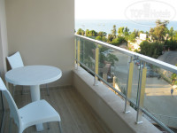 Пляж удивил.Прикольные,претендующие на оригинальность зонты,покрытые пальмовыми листьями как-то странно расставлены : приходится постоянно перетаскивать шезлонги вслед за солнцем,если не хочешь обгореть.К тому же пляж расположен на трех уровнях,как бы террасой,поэтому получается нерациональное использование пространства при наличии толпы жаждущих тени.В Кирише мы спокойно лежали под монолитным тентом в мелкую "умную" сеточку,через которую невозможно обгореть и остаться бледным.Идеальный вариант.Грязь на пляже и постоянно забитые мусором урны не вписывались в пейзаж.Единственное,чем пляж заслужил "+" - это удобный трап для спуска в воду с пирса.В волнение очень удобно.Галька в прибрежной полосе не чередуется с булыжниками, и это хорошо.