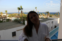 В общем за доплату 100 евро, т.е. наш депозит, что мы оставляли при регистрации на ресепшене, списали и дали номер на 2м этаже, что немного получше, но и то, он тоже не стоил этих денег (фото - я в халате).