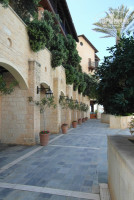Территория - фигурный бассейн с мостиками, большой газон у моря с бесплатными лежаками, все живописно оформлено дорожками и кустами (вообще, на Кипре с ландшафтным дизайном все хорошо). Отель огорожен по периметру забором и стеной, так что посторонние особо не ходили (только вдоль моря по променаду гуляли явно не постояльцы и заговаривали с девушками:) На территории есть часовня.