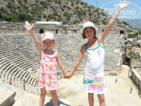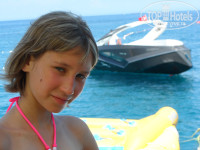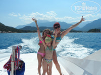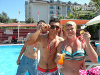 В Турцию ездили впервые, и к подбору отеля относились очень серьезно. Большую роль сыграли отзывы тех, кто уже был в этом отеле. Нас было трое взрослых, трое детей (15,12,5 лет). Привезли нас в отель в 7.00 утра. Заселение в 14.00, но мы были готовы: переоделись в купальники, сдали вещи администраторам и пошли гулять по отелю. Заселили нас около 14.00 в номер, к которому у нас абсолютно никаких претензий не было: мы не рассматривали каждую щелочку на предмет наличия неаккуратной штукатурки, т.к. приехали совсем не за этим. Очень впечатлила встреча с Рамином (представитель тураператора). Все популярно объяснил и уже после встречи было ощущение, что "большой брат смотрит за тобой". Ну а если серьезно, то создалось ощущение полной защищенности. Что касается питания, то претензий не было ни у детей, ни у взрослых: всегда был большой ассортимент фруктов, сладостей, мяса... Анимация нормальная, после вечерних развлечений часть отдыхающих уезжала на дискотеку,но так как мы были с детьми, выезжать возможности не было, а потанцевать примерно час хотелось бы. Хотелось бы разнообразия в детских развлечениях. У аниматора Алины настроение почти всегда было "не веселое" (мягко сказано). Остальные аниматоры большие молодцы: Рамчо, Рома, Уно, Оззи. Рома вообще отдельная история. Складывалось ощущение. что он знает каждого по именам, дети и подростки от него были в полном восторге. До сих пор если громко крикнешь: Ааармаас Биич, то они отвечают: УУУУУУУУ!!! И так четуре раза.