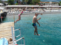 Море потрясающее в любую погоду: очень чистое, комфортной температуры, заход в море также хороший, ну а если мешает мелкая галька, то можно обувь купить или брать пример с моей пятилетней дочери - она ходила босиком (отличный массаж).