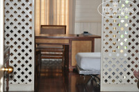 Первую ночь мы провели в улучшенном номере, для троих тесновато. Поэтому переселились в номер полу-люкс. Огромный номер, высокие потолки, мебель из дерева и ротанга.