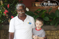 В отеле есть женщина она работает в аювердическом центре - вот она по русски говорит нормально. Спасибо ей - помогала нам во многом. территория отеля не большая но уютная. Питание у на с было только завтраки. Выбор огромный - что поесть.