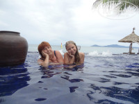 Приехали в 11 утра, а заселение в 14 00, но подождали минут 40 в холле, выпив имбирного чая с орешками и оп - мы в номере 1124 с видом на сад. В восторге были от бассейна с видом на пляж! Минус в людях из Китая - это просто жесть! Когда они в бассейне - лучше оттуда выйти! Не пугайтесь мешков лежащих вдоль линии пляжа, переступил и забыл!))) Пляж чистый, море - супперр!!! В отеле тихо и не много народу, кроме выходных, когда приезжают местные на уикенд, но места всем хватает, нет драк за лежаки на пляже и столики на завтрак. Русских мало.