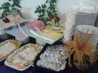 Сначала,в первый день показалось,что не разнообразно,но на второй день поняли,что очень даже большой выбор.Что касается мясных блюд,то каждый день было и мясо,и курица.А по вечерам или курица-гриль,или рыба жареная,или мясо.Гарниры всевозможные(рис,картофель-фри,макароны,овощи тушеные). Фрукты в изобилии каждый день(арбузы,дыни,абрикосы,нектарины,виноград,яблоки,сливы,апельсины). Сладости так же с утра и до вечера,самые разнообразные,вкусные.На завтрак готовят омлет,яицницу-глазунью,булочки,а так же есть хлопья,шоколадные шарики с молоком,сыр,ветчина и т.д..Салаты есть и утром,и днем и вечером,так же разнообразные.Все очень вкусно,всегда можно найти для себя то блюдо,которое хочется!