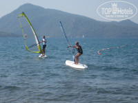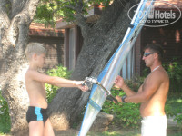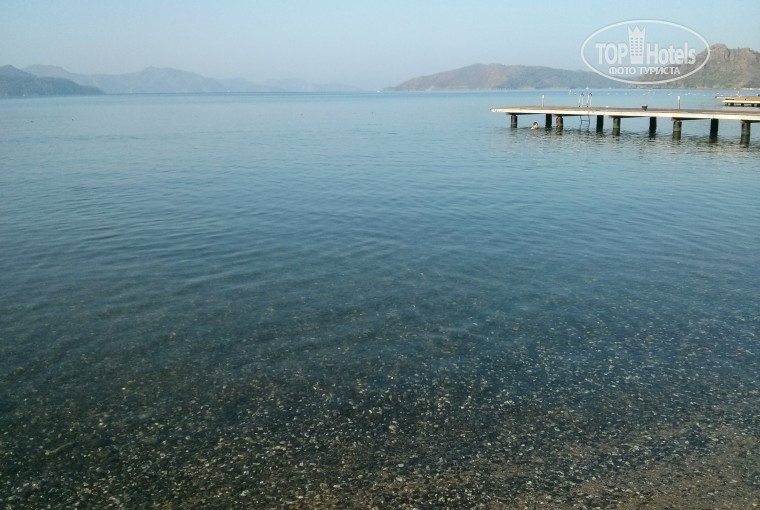 Как водится, сначала купили тур по рекомендации агентства, потом почитали тут негативные отзывы :) Летели туда, как в какую то клоаку. Однако, всё оказалось гораздо лучше ожидаемого! Номер нормальный, с видом на море. Считыватель карт был поломан (второй раз так везёт), поэтому кондей и свет в номере не выключались, когда мы уходили на пляж. Кондей работал тихо и мощно. Юзали его на самой медленной скорости, иначе получался морозильник. На завтрак выбор небогатый. Из вторых блюд - омлет непонятной консистенции и жареная картоха. Мы завтракали йогуртами с консервированными фруктами. Очень вкусно и для здоровья самое оно. Обед - самый обычный для Турции. Жареная баранина, индейка на гриле, жарено-тушёные овощи и т.п. Какие то супы-пюре, вполне съедобные. Я их брал постоянно, семья игнорила. И айран, он же каймак. Настоятельно рекомендую. Голодными не останетесь. Мы после обеда выкатывались колобками и валились спать часа на три. В ресторане, на террасе, как многие говорили уже, реально достают ОСЫ. Их ОЧЕНЬ много. Но нами они не интересовались, таскали хавку из тарелок по мелочи :) Поэтому желательно приходить пораньше и занимать столик внутри. Но если не успели внутри, садитесь на террасе, за самые близкие столики к морю. На перила, ограждающие террассу, ставится тарелка с мясом и осы там пируют, забывая про вас :) В общем, проблема решаема. Анимация детская откровенно слабая. В прошлом году, говорят, была лучше. На пляже аниматоры тоже пропагандистскую деятельность ведут слабо. Хотя, если самостоятельно озадачиться развлечениями, вас направят к нужному человеку. Отель международный. Чехи, поляки, немцы, украинцы и т.п. Русских как то незаметно. Пляж очень узкий. От четырёх до десяти метров. Раньше я думал, что это чисто русская привычка, застолбить лежаки полотенцами на весь день. Ан нет. Культурная европа тоже этим страдает, хотя лежаков хватает на всех. Пляж убирается слабо, до синего флага им далеко. Однако, окурков там не найти. Просто какое то общее ощущение неряшливости, чтоли. После Кириш резорт с его голубым флагом чистоты, контраст очень заметен. Сам отель тоже не люкс. Что то поцарапано, что-то сломано и т.п. Но это если специально цепляться к недостаткам. Если вы приехали отдыхать, вам вряд ли испортит отдых облезающая эмаль в ванной ;) Отношение персонала очень разное. В баре у бассейна бармен работал с вечно удручённым лицом и замученным видом. Видно было, что работа ему опостылела лет десять назад. Очень неспешный. В баре у пляжа, наоборот, улыбчивый паренёк чень бодро бегал. В целом, отель оставляет хорошее впечатление. Я даже, скорее всего, сюда ещё раз поеду. Если я вас уговорил на тур сюда :) настоятельно рекомендую попробовать виндсерфинг. Раньше я дуумал, что этому надо сто лет учиться. Однако вся моя семья встала на доску после получасового инструктажа на берегу! Удовольствие огромное! Жаль, мы поздно в эту тему вникли. Получилось покататься всего четыре дня. Инструкторы Али и Руслан хорошо говорят по русски. И учат тоже норм. Как научитесь самостоятельно кататься, учтите - слабый ветер с утра. Годный ветер поднимается после обеда. Вечером ветер для профи. Стало быть с утра просите большой парус. в обед средний. А вечером смотрите, как катаются инструкторы :) Удачи! И не ищите негатива там, где его нет!!!