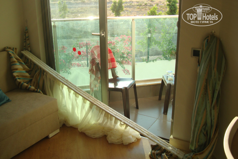 Прибыли в отель около 14 часов, сказали номер не готов, подождите. Ладно, мы не против, ключи выдали минут через тридцать, но, зайдя в номер была сразу разочарована, номер был грязным, пол не был вымыт, полотенца не хватало, балкона почти нет, перешагнув можно было оказаться на крыше первого этажа. Вид с балкона тоже завораживал – зеленый рубероид с потеками и разводами. Вытяжка в ванной не работала, двери грязные с момента их монтажа, нигде не предусмотрены никакие сушки для белья и что удивило – укрываться не чем, то есть надо укрываться синтетическими покрывалами для кровати, и они были ГРЯЗНЫЕ, те их никто не менял точно. На следующий день номер заменили, но все такой же грязный, вытяжка в туалете так и не работала, единственное что изменилось – это балкон (были перила, на которые можно было развесить полотенца). В первую же ночь у нас упал карниз. Отель видно делался на скорую руку, очень не аккуратный, ничего не радовала глаз. Зеленой территории нет, на детской площадке всегда валялся разный мусор. С персоналом на не повезло, очень не внимательный и не приветливый. Столько грязи я не видела и в одном другом отеле. Кормили не плохо, мы не объедались, у нас не было такой задачи, но и голодными не ходили. Очень понравились фрукты – качество и количество. А пляж – это другая история: сам пляж хороший, песок, море порадовало, с лежаками нет проблем. Правда, мужчина, работающий на пляже пытался нам их создать. На пляж мы приходили рано утром – там проблем нет, а потом мы всегда шли на пляж после 4 часов, так вот тот мужчина старательно все матрасики уже собирал, и если в наглую не взять самим, то он их уже не давал, хотя, по моему, это самое время для пляжа, тем более ехали мы Турцию именно из-за моря. И еще, очень не удобно для меня было это автобус для моря. Последний автобус с моря уходил в 6 вечера, но нам раньше 7 часов уходить с пляжа не хотелось, так как на территории отеля делать не чего. А маршрут был очень завораживающий. Во-первых, идти до пляжа не 550 м как заявляют на сайте, а м 800 это может все ничего, ходить мы любим, только идти надо по помойке, мусора мы разного насмотрелись и кошка умерла – газеткой добрые люди прикрыли. Вот так может кому и приятен такой отдых, а мы привыкли к другому.