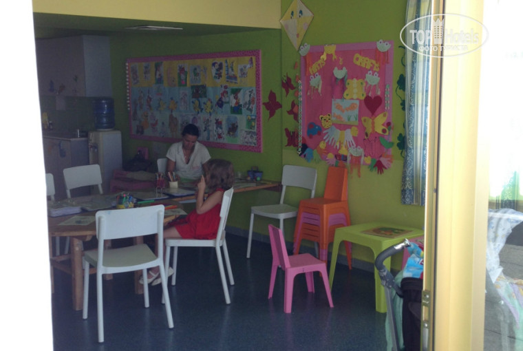 Территория: все чистенько, аккуратненько. Порадовала травка около бассейна с горками - очень удобно с маленькими детками. Имейте в виду, что уже в сентябре в бассейне с горками не просто холодная вода, она ледяная. В других бассейнах вода комфортная. В описании отеля указано, что есть бассейн с подогревом, не надейтесь - имеется в виду крытый бассейн, который есть-то два на два. Wi-fi платный. В детской комнате деткам играть не во что. Есть сувенирный магазин, каждый день приезжают еще что-то продавать (сумки, ювелирка и т.д.).