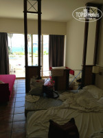 Номер: бронировали Bungalow Sea View. Минус: одна комната с перегородкой, площадь не очень большая, ремонт в этом корпусе явно не делали, лучше брать второй этаж, т.к. на первом люди жаловались на муравьев, на весь номер одна розетка. Плюсы: шикарный вид из номера, большая терраса с лежаками и зонтом, вечером тишина и покой. Холодильник был открыт (видимо, в этой категории номеров он бесплатный, а может, повезло), сейф платный, фен есть. В номере две односпальные кровати, два дивана, для малыша стояла кровать-манеж, что очень удобно, т.к. на полу плитка.