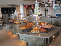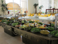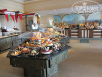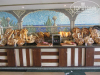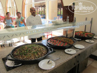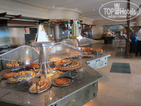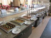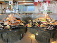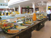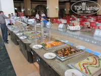 Отель состоит из 3-х корпусов, буквой Ш, в основании – центральная столовая и ресепшен над ней, между корпусами бассейны, один с горками. С точки зрения удобства селиться лучше во 2-м корпусе, так ближе до всего, но если окна на дискотеку – ночью ее хорошо слышно (у нас были на другую сторону, тишина)). В отеле чисто, постоянно что-то убирают, натирают, моют. На ресепшене 2 бара, теннис (2 стола, бесплатно) бильярд (2 стола, 5$ в час), вайфай (хреновенький). С ресепшена спуск в центральную столовую, очень большая, места всегда хватает. Посуда, приборы в основном чистые, но попадались неотмытые тарелки и кружки, столы, если не придираться, тоже. Постоянно курсируют служащие, убирают грязную посуду со столов. Завтрак/поздний завтрак/обед/ужин - 07:00-09:00/10:00-11:00/12:30-15:00/18:30-22:00 – вполне достаточно для того чтобы не заходить в круглосуточный фастфуд.