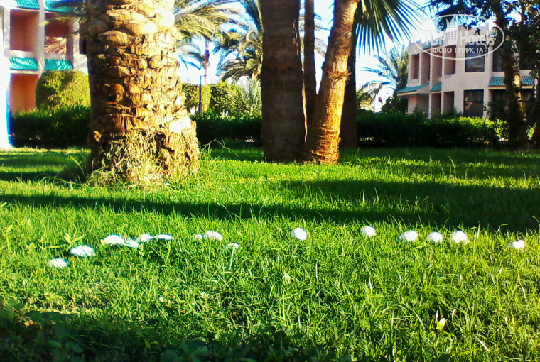 Огромная, ухоженная (ребята из предыдущих отзывов –где вы запустение и разруху то выкопали? Я все ходила и искала.. ну есть чуть засохшие кусты- но это отдельные старые ветки и их мало (не вырежут же из живой изгороди 1 ветку нарушая изгородь..) газон проливают так что запах болота стоит.. это конечно перебор…наверно поэтому столько комарья. Газоны стригут раз в 7-10 дней. Выросли грибы)) нормальные большие- смотрится круто- грибы под пальмами.. «пальмята» наверно или «под пальмовники»). Кусты цветут, воробьи, голуби летают, цапли носятся, цекады стрекочут- красота.. комары только гады.. кусачие до жути- их травят через день- все равно не помогает.. вывод.. ну не надо ТАК газон то поливать.. вода хороша в меру.. Комаров не берут Российские пластинки- пошли в цензомолл купили фумикатор-жидкость в розетку втыкающуюся для помещений – 34 фунта и пшикалку для кожи 24 фунта ( итого на наши- рублей 300), по опыту прошлого года- отдыхали в 1001 ночи-лейла ва лейла- везти в россию эти фумикаторы бесполезно- наши комары этого не боятся- подарили местным- они были рады) . Садовники что то вечно меняют- то газон то деревья пилят новые садят то косят газон косилкой, краской бордюры красят. Короч шуршат как муравьи.