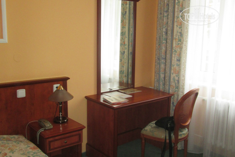 Сразу скажу, что в отеле все понравилось! Из автобуса мы были одни в этот отель, гид заранее позвонила и уточнила, есть ли сегодня русскоговорящая девушка на ресепшене, девушка оказалась на месте, быстренько дала нам ключи, несколько ценных советов по Праге, после чего мы отправились в номер. Номер на третьем этаже 307, балкона не было, в номере чисто, мебель выглядела очень хорошо, кровать не двуспальная, к сожалению, а две совмещенные. Санузел нормальный, душевая кабина, раковина, зеркало и унитаз, никаких сколов, ржавых разводов и неприятных запахов не было. Многие писали про шум трамваев под окнами, честно скажу, мы их практически не замечали, и спать они не мешали совершенно. Уборка номера каждый день, причем наличие чаевых на качество уборки никак не влияло, каюсь, пару раз убегали на экскурсии и банально забывали оставить деньги. Теперь о многострадальных завтраках, о которых сказано уже так много в предыдущих отзывах. Опять же, нам жаловаться не на что, всегда были: ветчина, колбаса, сыр, масло, несколько видов хлеба, фрукты, мюсли, хлопья, кексы или что-то подобное, овощи, что-то горячее типа капусты с сосисками, ни разу не ела:), а также чай, кофе, молоко, сок и вода. Нам было более, чем достаточно. Но я наблюдала наших туристов (кстати, это были единственные люди в отеле, которых я видела в спортивных штанах), которые приносили с собой впечатляющие запасы провизии. Могу только позавидовать, ибо я больше пары бутербродов с утра в себя ничего впихнуть не могу:). Расположен отель очень удачно, благодаря близости трамвайной остановки, путь до центра города занимает всего 5 минут.
