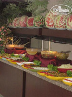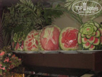 Питание однообразное,но голодным никто не остался.Из фруктов был арбуз,дыня,грейпфрут,слива.А вот сладкий стол никого не оставил равнодушным,выбор был довольно большой.