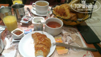 Еда: завтраки крайне скромные (для кого-то) и каждый день одно и тоже. Но по той причине что мы не прихотливы нам было нормально. Садишься за стол, на котором стоит набор: чашка, блюдце, салфетка, нож, ложка чайная, контейнер с джемом, контейнер с нутеллой, 4 кусочка сахара. Подходит к тебе милая тётенька и спрашивает: "Коффи, тии, шокола?". Ты ей говоришь что хочешь. Она приносит корзинку на двоих, на стол с двумя булочками, двумя круассанами и двумя маленькими багетиками. Далее приносит йогурт (какой попадётся - это рулетка :)) кусочек масла, кусочек сыра в упаковке или плавленный сырок (тоже когда как), сок в стакане апельсиновый (из пакета), чайник чая (много) либо кофе, к кофе молоко, шоколода не брали. Мы наедались. Мы дома так не едим с утра. Поэтому для нас это было много. Хотя конечно 15 дней это конечно приличный срок, но мы вытерпели, просто потому что мы вот такие в этом плане. Кому это очень принципиально, либо выбирайте другой отель, либо не берите завтрак (но честно говоря идти искать где-то завтрак мы бы не рискнули, дорого всё и так нормально). Некоторые наши сограждане без зазрения совести заворачивали все оставшиеся в корзинке булку с собой. Я считаю это не очень приличным. Да и неужели хочется в течении дня опять есть все эти булки? Вот уж точно на следующий день будет от них тошнить! Не будьте жадными. Съели один круассан и багет и хватит. Такое количество выпички даётся вам не что бы вы всё это сожрали, а просто в качестве возможности выбора! Хотя никто конечно ничего не говорил тем, кто забирал выпечку с собой.