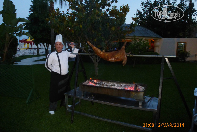 В главном ресторане: завтрак с 7 до 10, поздний завтрак с 10 до 11, обед с 12.30 до 14, ужин с 19 до 21. Не советаю приходить за 20-15 мин до закрытия ресторана, т.к. некоторые блюда начинали увозить из зала. Еда не отличалась разнообразностью, но голодными не оставались. Есть ресторан ala carte, записаться в который можно в лобби, сходить можно 1 раз за время прибывания. В этом ресторане 4 меню, выбрать меню можно при записи. Кроме этих ресторанов есть снек бар, лобби бар, бар у бассейна.
