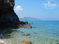 вы выходите из отеля,и перед вами дорога(проезжая часть) 250 м и вы у моря.