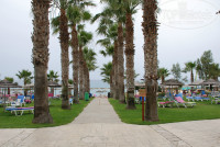 Территория не слишком большая, но всё, что нужно для жизни, есть. Пляж (точнее, места с лежаками) разбит на две части: есть участок с аккуратно подстриженной мягкой травкой, есть песок (чистый, без камней). Вход в море - с деревянного настила, так что шлепать по камням нет необходимости. Впереди, дальше к морю - волнорез, так что даже в дни с сильным ветром купаться было безопасно.