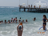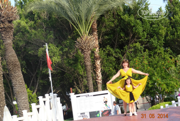 смирилась,успокаивая себя тем,что такое неизбежно в любом отеле.В общем,номера просторные,чистые и уютные. В Турции,и вообще,за границей первый раз....просто влюбилась в эту страну и в этот народ!Какие турки все-таки чистоплотные...все кипельно белое-полотенца!постельное!скатерти на столах в ресторане!!! О питании остается только вспоминать дома!Особенно,мои любимые арбузы!Каждый день в отеле мы ждали вечера,чтобы не только наесться,а самое главное красивого сюрприза от поваров!!!Спасибо вам огромное за кухню!А самое приятное,что даже начальству там не в тягость поднять с пола,например,упавшую салфетку!Единственное,что не хватало в питании хотя обычного прозрачного бульона.Ни нам ни ребенку супы-пюре не понравились,а она у нас уже с желудком на учете,но во всяком случае обошлись без обострения! Территория отеля нам очень понравилась.Во-первых,очень удобная,во-вторых,Очеееень красивая,зеленая,ухоженная,в-третьих бар посреди территории был кстати! Море шикарное,но немного не повезло-2 дня был очень сильный шторм,был закрыт даже подход к морю.Пляжи чистые,возле каждого лежака урночки,правда в хорошую погодку свободный лежак найти трудно. Ну,и,конечно,самое большое впетление оставила анимация.Мальчишки и девчонки вы_Супер!!!Даша,Оля,Андрианна,Бани и ведущие вечерних шоу!!!Скажу честно,я давно так не смеялась!!!!Ну а доченька прописалась в детском клубе.Сейчас вспоминает мини-диско,скучает за аниматором Катей и повторяет все танцы,которым девчонки учили на дискотеке. Возвращайтесь в Кириш и на следующий год,мы обязательно приедем! Единственное,от турецкой ночи я ожидала чего-то большего,но в то же время довольна,что увидела что "это такое"!Словом,уезжала со слезами....обязательно вернемся в этот отель!