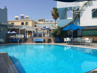На территории 2 бассейна. Один с переменной глубиной, второй 1,5 м. Вода чистая, купаться приятно. Народу в отеле не много. В основном британцы, есть русские и чуть других европейцев. Есть бар с очень милым барменом- киприотом, который говорит по- английски. В баре и лобби работает бесплатный вай фай. В отеле несколько корпусов и террас. Эта разноярусность радует глаз. Много зонтов и шезлоногов.